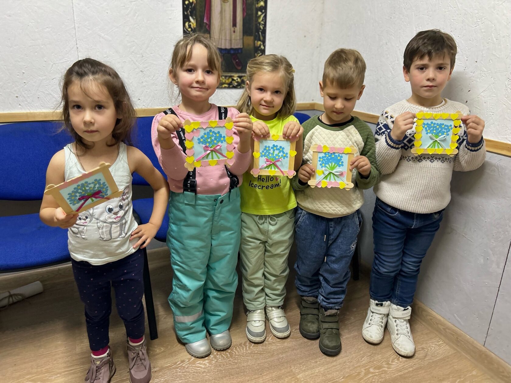 Сегодня самые младшие воспитанники нашей воскресной учебно-воспитательной группы мастерили подарки к Дню мамы.